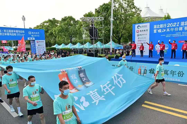 5月5日上午2021湖北長(cháng)江超級半程馬拉松在鄂州市枝江市石首市嘉魚(yú)縣巴東縣5地同時(shí)鳴槍開(kāi)跑 這是湖北省疫…
