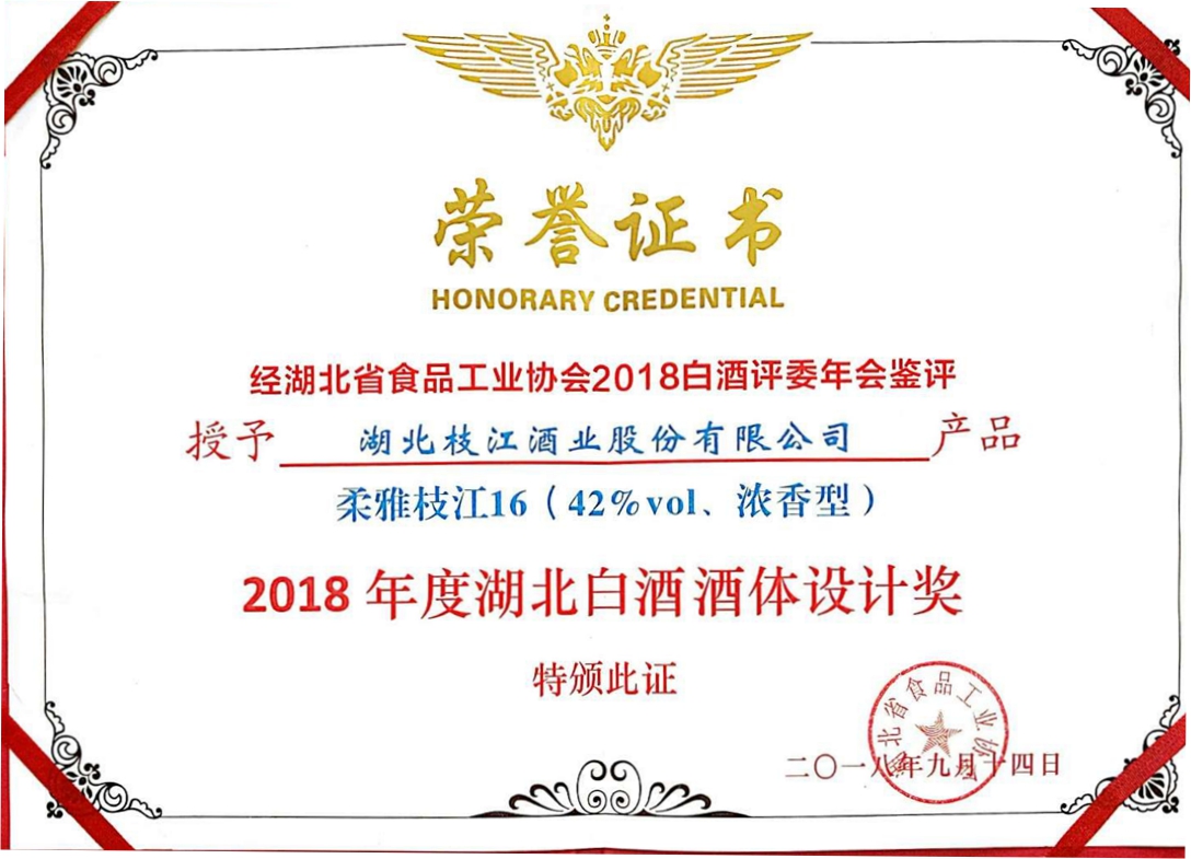 近日,湖北省食品工業(yè)協(xié)會(huì )白酒評委年會(huì )在恩施野三關(guān)舉辦,枝江酒業(yè)產(chǎn)品“42%vol柔雅枝江16”以其獨特的醇柔品質(zhì)一舉摘得“酒體設計獎”,這是…
