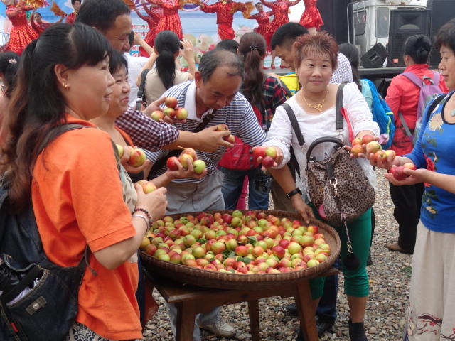 (嘉賓、游客品嘗新鮮的桃子)